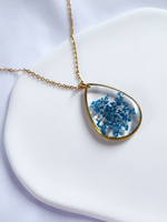 Naszyjnik z niezapominajkami i białą gipsówką