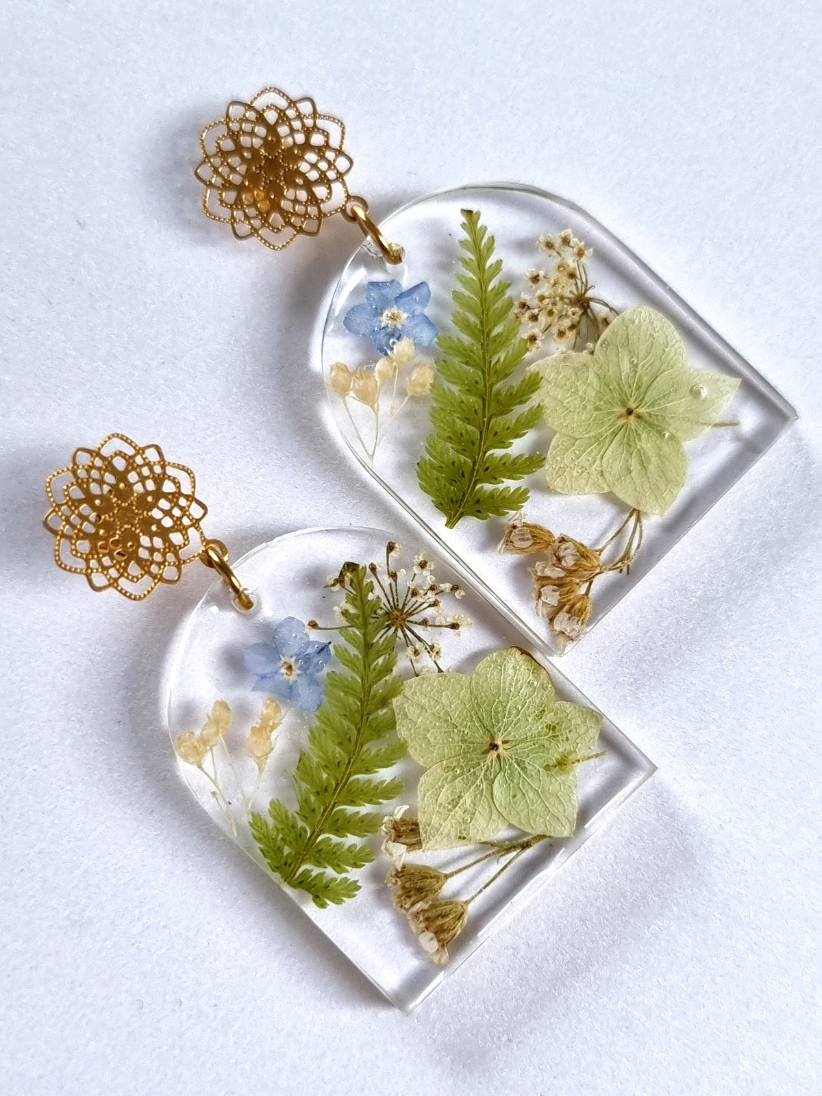 Biżuteria jest wykonywana ręcznie, suszę oraz zatapiam w niej prawdziwe kwiaty, z zachowaniem wdzięczności do piękna Mamy Natury.